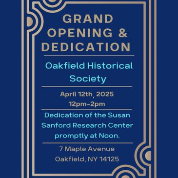 Join us for our 2025 Grand Reopening and dedication of the Research Center in memory of longtime OHS Board member Susan Sanford. Dedication is at noon followed by your choice of self-guided or curated tour. Our brand-new exhibit is about East Oakfield.